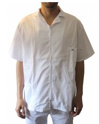 Descripción: Camisaco unisex, bolsillos delanteros y tajos laterales. Para rubro alimenticio y de salud. Tela sarga. Talle: 1 al 6 Color: blanco